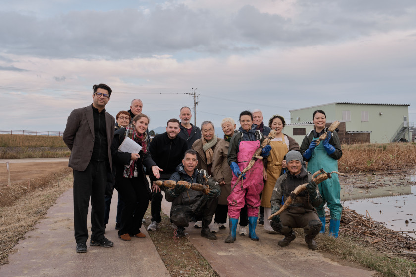 2025年11月15日(土)のスペシャルイベントに先立ち、「ガストロノミーキャンプ in 福井」が行われました。来福したのは、クリスチャン・テットドア氏、パトリック・アンリルー氏、ファニー・レイ氏、ジョナサン・ワイド氏、カルビン・ルオー氏、フランク・ランギーユ氏。福井の生産者や文化をめぐる一日が始まりました。