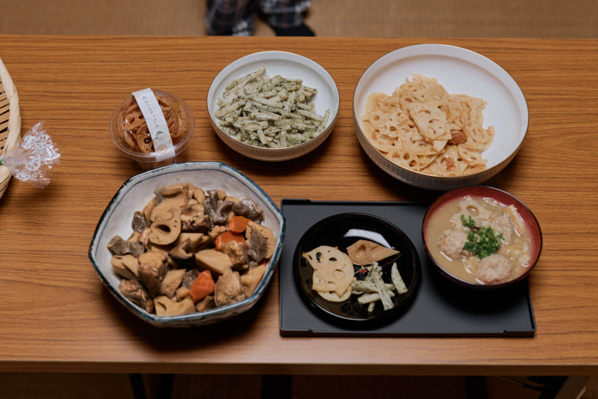 掘りたてのレンコンを使った料理の試食では、きんぴら、筑前煮、汁物と、多彩な表情を見せる食感にシェフたちも興味津々。「鮮度が命」と話すグリーンファーム角屋の斎藤翔子さんの説明に、素材をどう生かすかという視点からも多くのヒントが得られた様子でした。