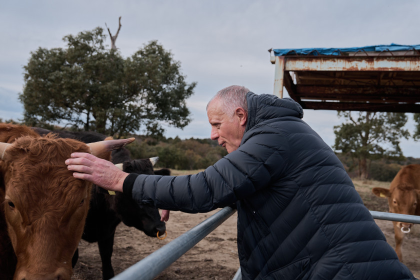 「故郷でもこうやって牛を撫でていたんだよ」と、パトリック・アンリルー氏