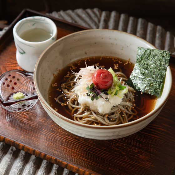 県産そば粉による手打ち蕎麦と、旬の食材を活かした蕎麦懐石を提供。繊細な喉ごしで細く気品あふれる十割そばが評判の一軒です。