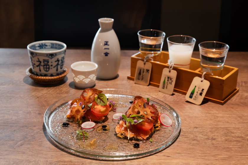福井市片町の隠れ家居酒屋。北陸の旬の魚介や名物料理を、多彩な地酒とともに楽しめる人気店。「ミシュランガイド北陸2021」ではミシュランプレートにも選出。