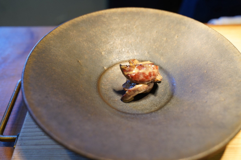食材はもとより、建物、調度品に至るまで、ザ・越前を堪能できる。料理の熱源は炭と薪。と聞けばワイルドな直球料理かと思いきや、繊細な仕事も光るシェフは、イタリア・トスカーナ(シエナ)などで研鑽を積んだという。特に焼きの腕に唸った。旨い。そして、サービスとのチームワークも抜群だ。ともに歩むシックススリーエステイト(ワイナリー)のワインも白眉。越前の潮と風をうけて、自然な作り方を目指している。自然派がまだまだ少ない日本で期待大。