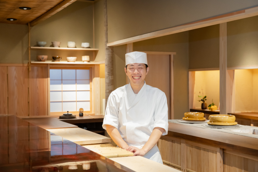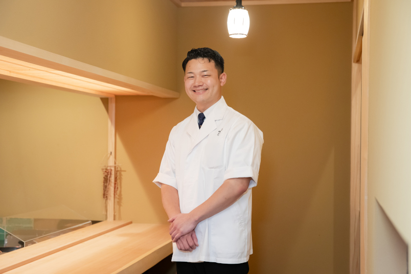 今回訪れるのは、店主・郷北斗さんが営む【鮨処 海月】。魚屋さんや海女さん、生産者との対話を重ね、その時期最高の食材を仕入れています。