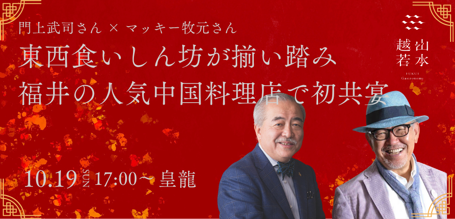 - 開催済【10/19(日) 17:00~】東西食いしん坊が揃い踏み!福井の人気中国料理店で初共宴の夜(中華料理 皇龍)